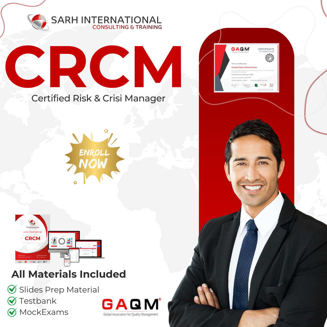 يقوم مركز تدريب صرح وبالتعاون مع المنظمة العالمية لإدارة الجودة GAQM بتقديم برامج تدريبية متخصصة في مجال الادارة مثل شهادة ادارة المخاطر والازمات ,(CRCM) بحيث ان إدارة المخاطر جزءًا رئيسيًا من إدارة المشروع وحيث أصبحت جزءًا هامًا للممارسات التنظيمية. وقد أدركت الشركات أن الإدارة الفعالة للمخاطر لا يمكن أن تقلل فقط من التأثير السلبي للأزمات ؛ يمكن أن توفر فوائد حقيقية وتوفر التكاليف المخصصة لأي مشروع.